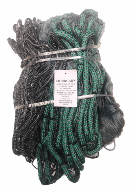 Fjordgarnet/torskegarnet er et 50 meter langt bunngarn med 78 mm masker. Denne maskestørrelsen passer godt dersom du ønsker fisk fra 4-5 kg og oppover. Garnet egner seg godt til blandt annet torsk, lyr og sei! Garnet kommer med korktau for dybde ned til 300 meter og og 10mm blytau, og egner seg derfor på utsatte steder med strøm og drag i sjøen. Montert på flettet ulstronsnøre. Innfelt 55%.