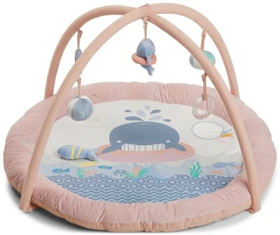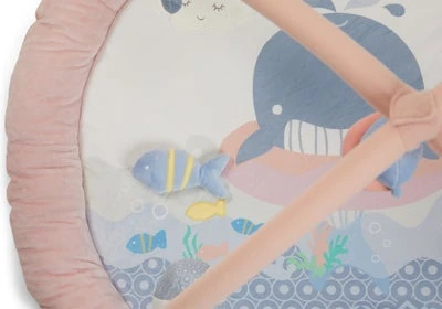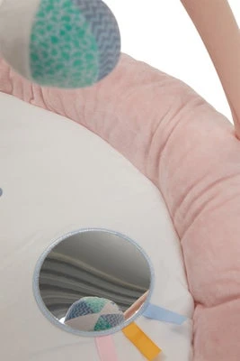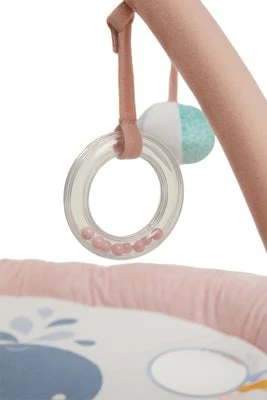 Rosa babygym fra Beemoo med et leketeppe i polyester. Den har en lekebue og mange leketøy perfekte både til lek og kos. – CE-merket– Anbefalt alder: Fra nyfødt