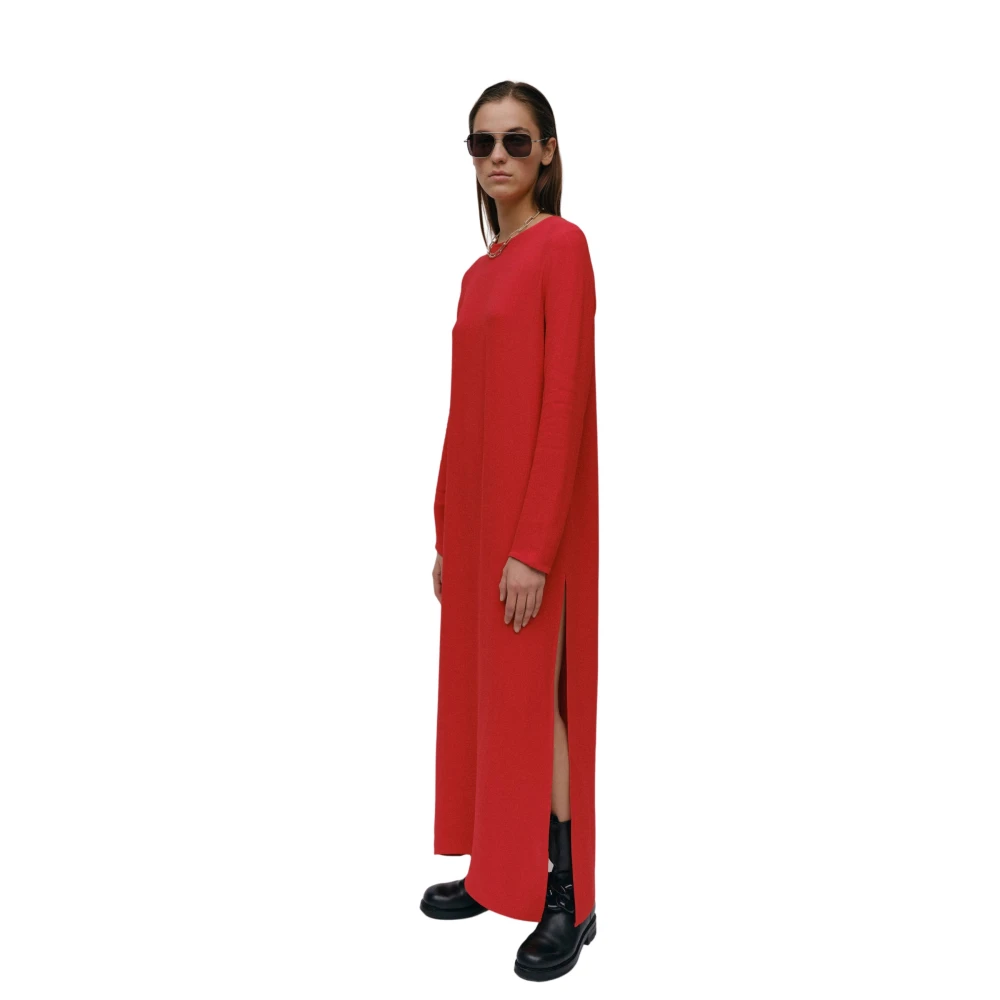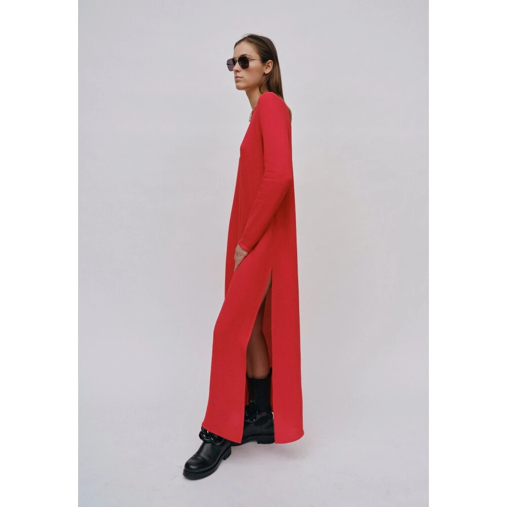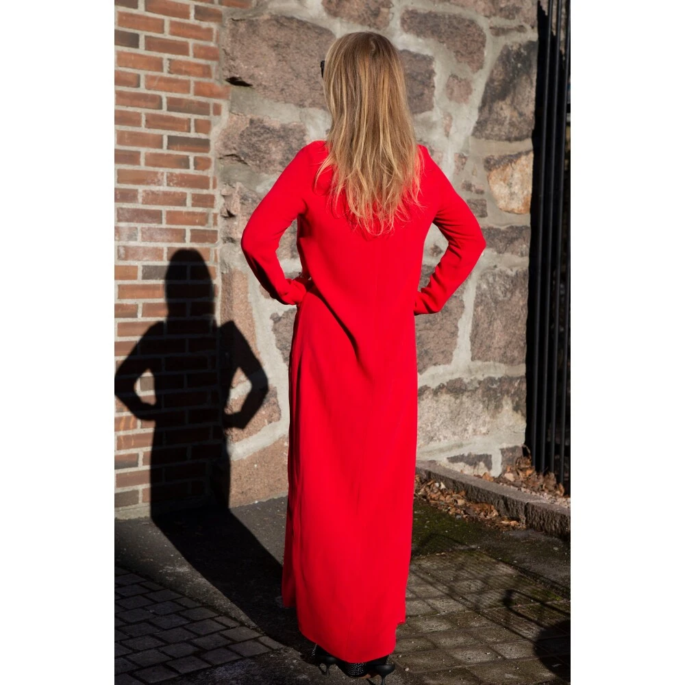 Molly Dress fra Birgitte Herskind. Maxi-lengden og oversized passformen gir et kult utseende, mens den høye splitten gir kjolen en avslappet og kjølig følelse. Kjolen har lange, smale ermer som kontrasterer fint med den løse passformen. Bruk sammen med et par støvler og en oversized blazer for en enkel og kul look. Lukkes med en usynlig glidelås i ryggen.Denne beskrivelsen er automatisk oversatt.
