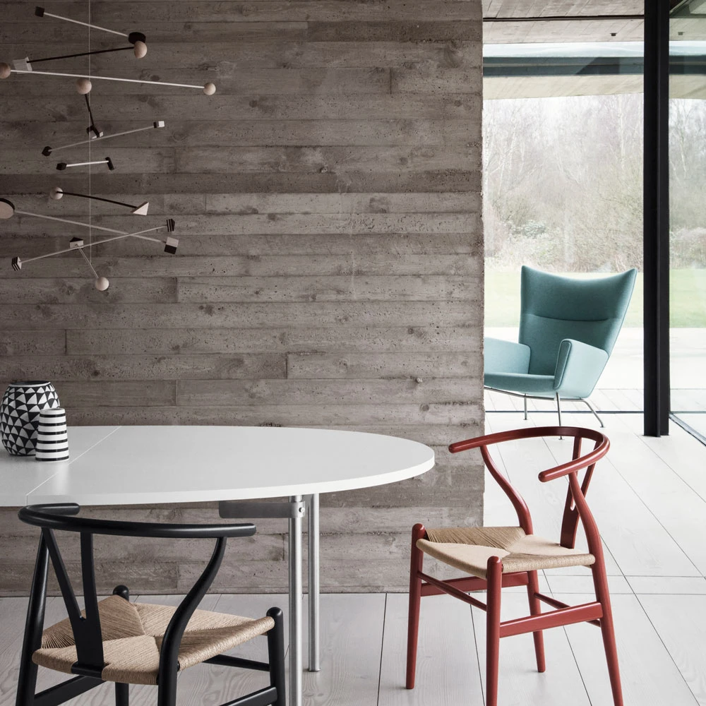 CH24 designades av Hans J. Wegner 1949 och har tillverkats utan avbrott sedan 1950. Designklassikern CH24, även kallad Y-stolen eller Wishbone Chair, är en sann ikon bland stolar och hett eftertraktad bland samlare världen över. Den behagliga formen ger en hög bekvämlighet och god rörelseförmåga. Stolen är tillverkad av massivt trä med sits av vaxat papperssnöre. Finns i ett stort antal olika utföranden.