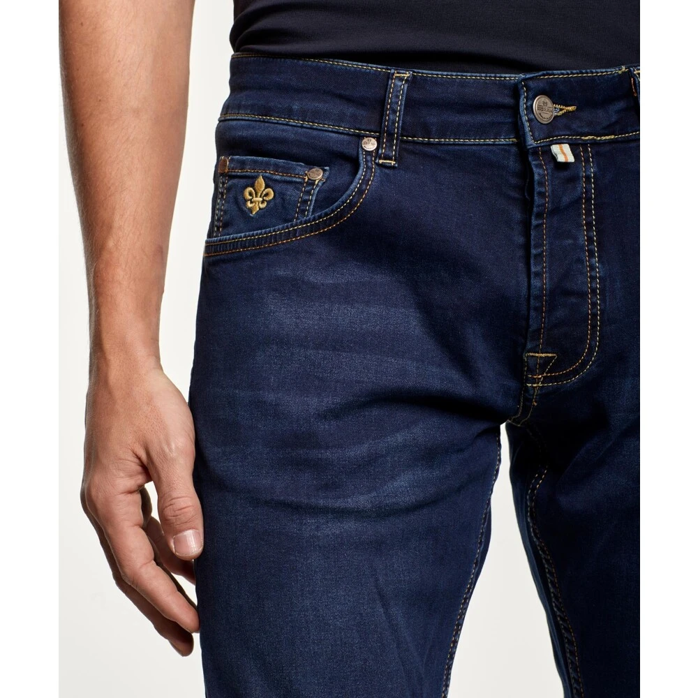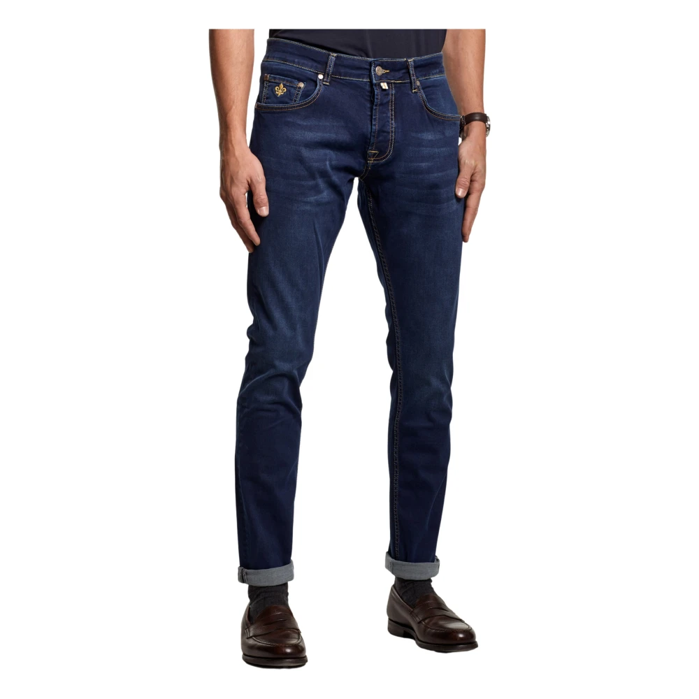 Jeans fra Morris. Buksen er produsert i bomullstwill med behagelig stretch og har en smal passform. Den erormal i størrelsen. Slim fit ormal i størrelse