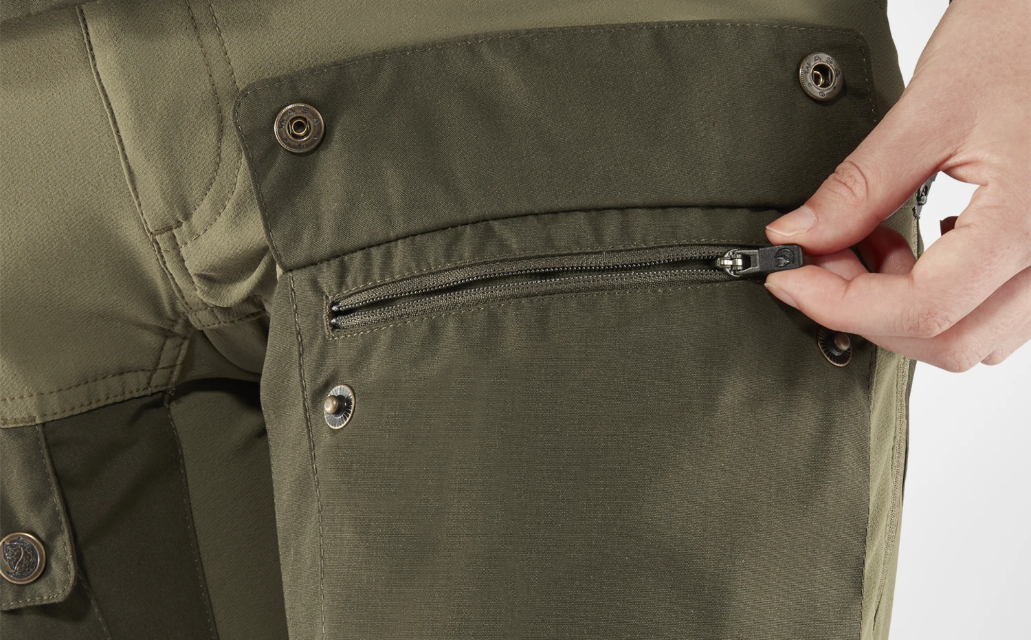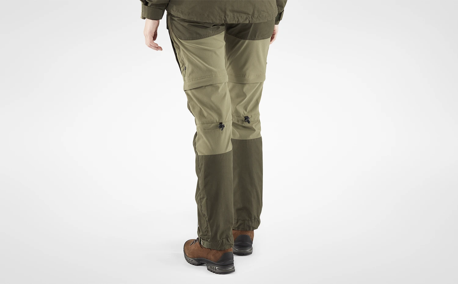 - Glidelåser over kneet gjør om den nedre delen av buksebenet til en gamasje
