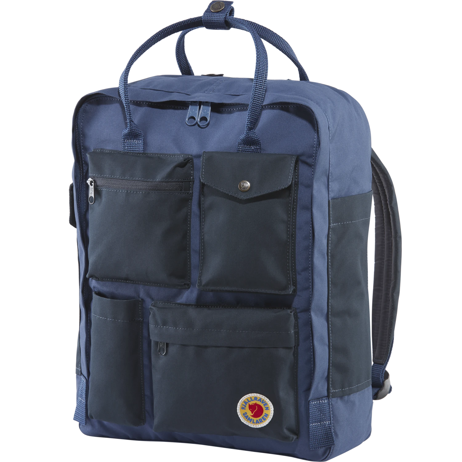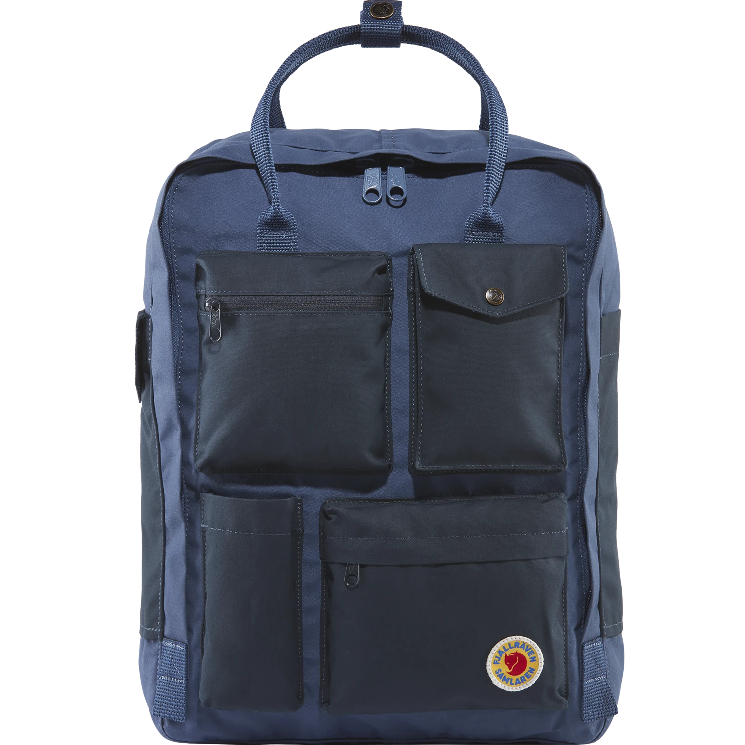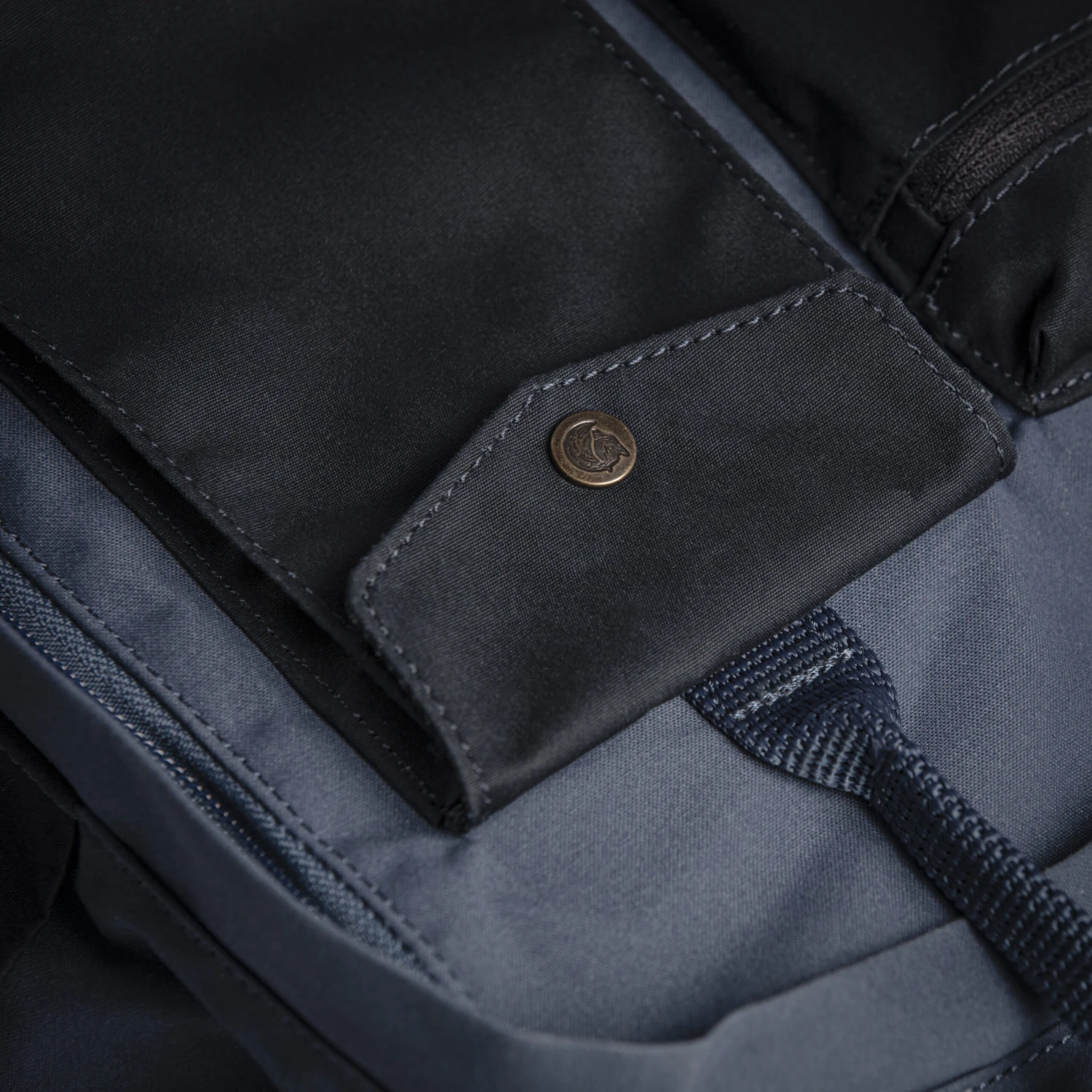 - Fire lommer foran hvorav to med glidelås, en åpen og en med klaff og knapp