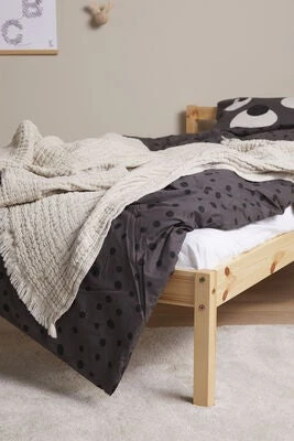 En juniorseng fra JLY, som er laget av slitesterkt furutre. Sengen leveres med ribbebunn, for optimal komfort og mange netters god søvn. Juniorsengen har en minimalistisk design, og passer perfekt til barnerommet, f.eks. som en første seng etter sprinkelsengen.