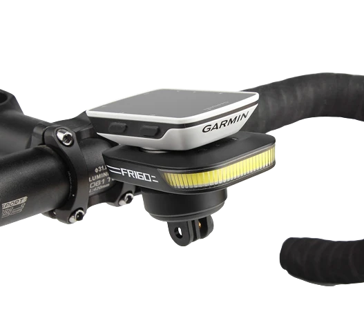 Lyset kan monteres i Garmin datamaskinfeste, deretter kan du montere din Garmin datamaskin på toppen. På denne måten integreres lyset i oppsettet.