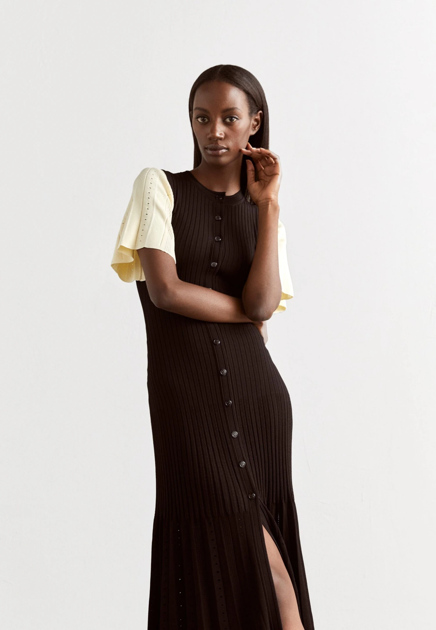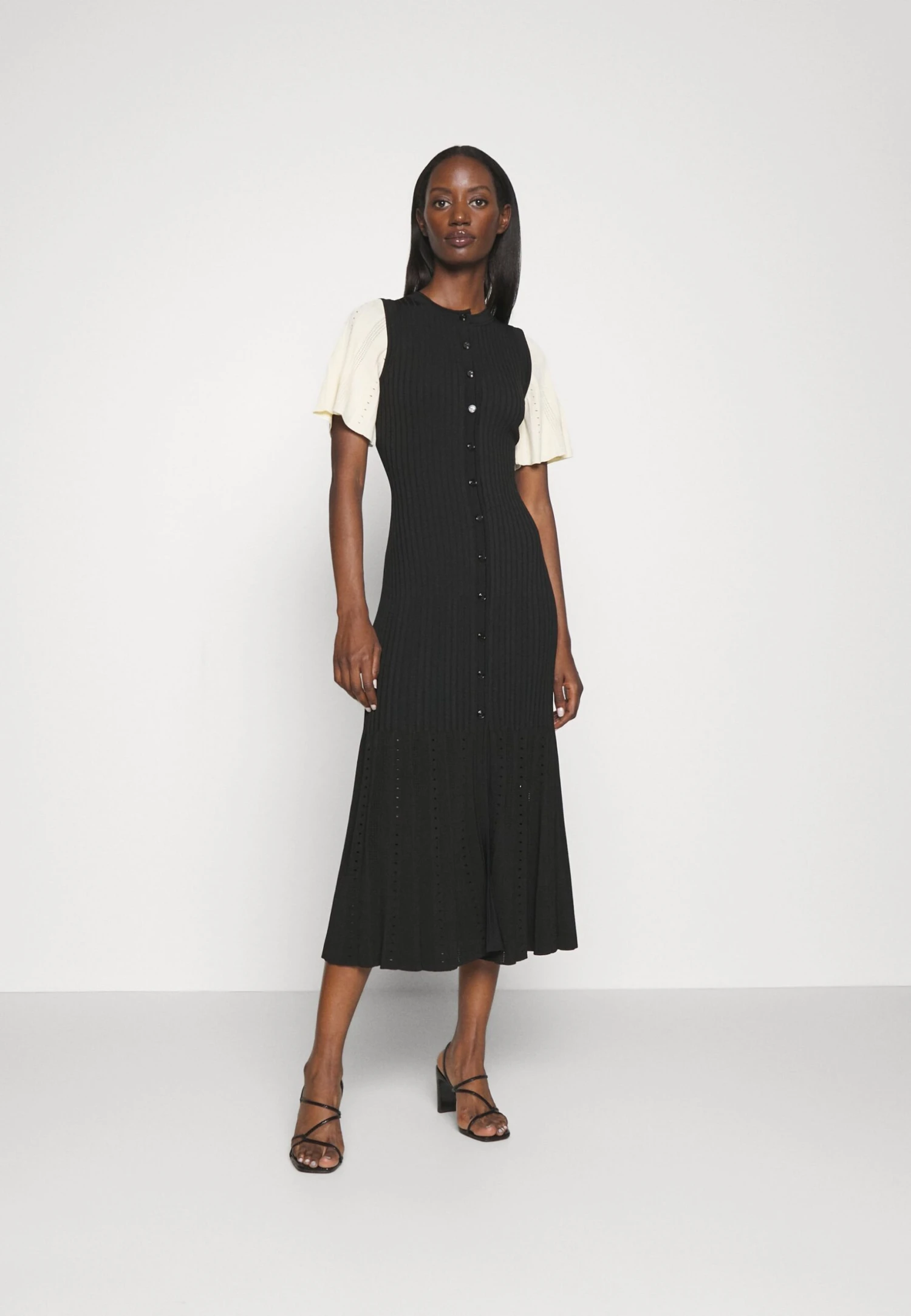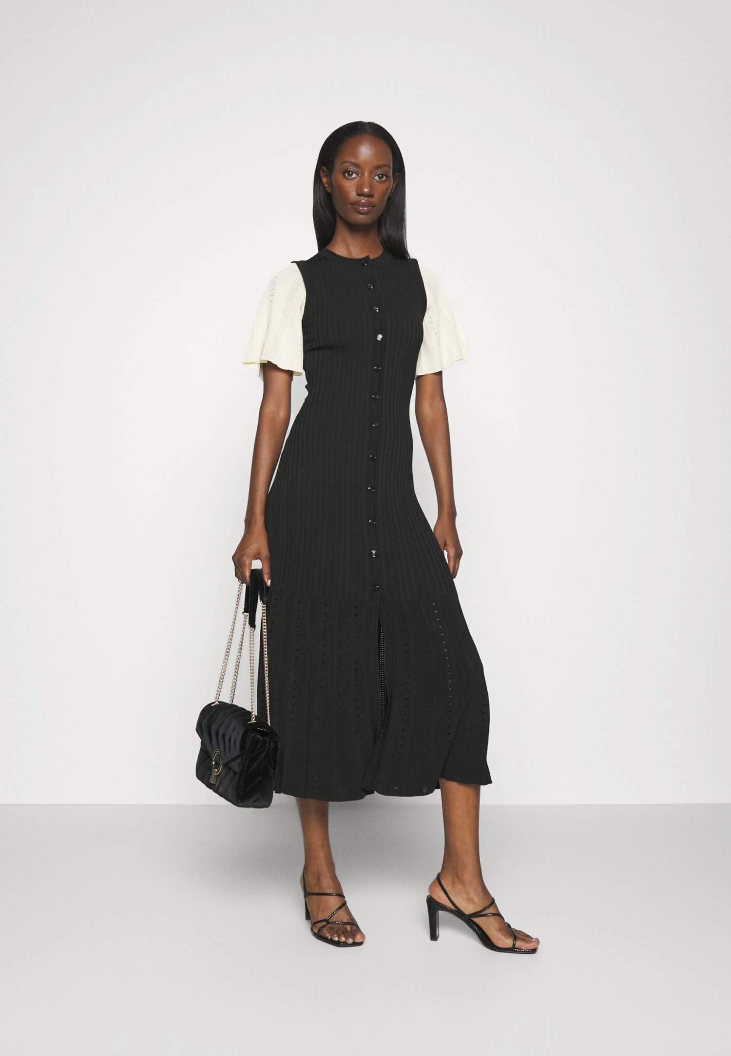 Sandro Robe Midi Claudine Boutonnee – Strikket Kjole – Noir