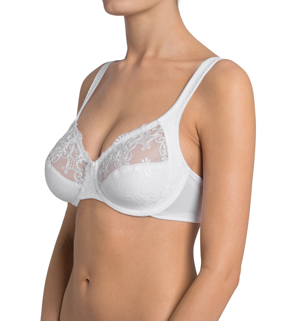 Riccarda W er en elegant BH fra Triumph. BHens skål er sydd sammen av tre deler som gjør at den samler bysten fremover samtidig som den løfter. BHen har også brede stropper.