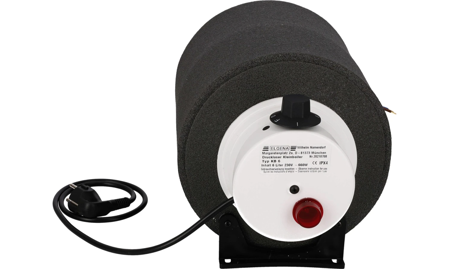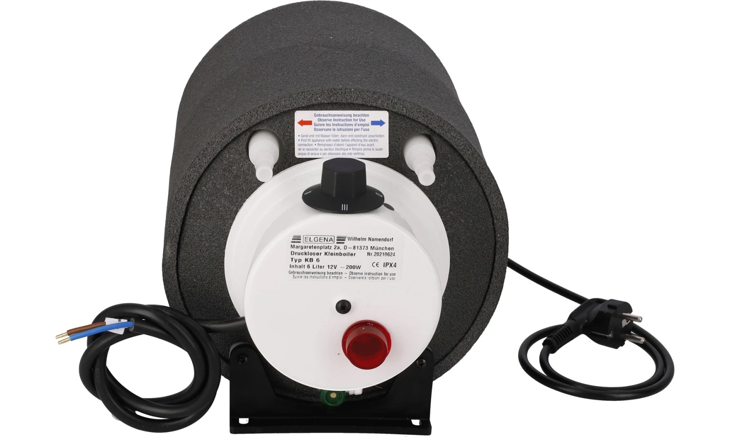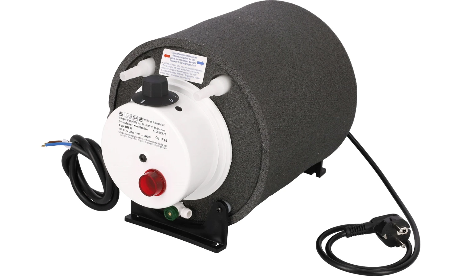 Varmtvannsbereder beregnet for enten 12V eller 230V tilkobling.
