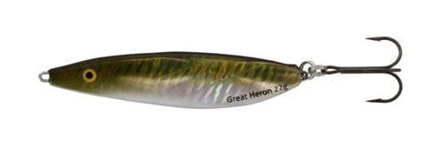 Great Heron 13 g Green Sardine 55 mmGreat Heron is a lure designed according to Finnish lure traditions. It was created and tested in cooperation with experienced anglers from Finland and Sweden. Right from the very beginning it has proved to be a highly efficient lure – not only for trout and salmon, but also for species like asp, perch and pike. Great Heron can be retrieved fast or slow. Regardless of the speed it has a very vivid action that will trigger the bite. No wonder this lure has become one of the most popular lures in Scandinavia!Lead free constructionMaterial: ABS plastic / ZincJapanese-style hookHook size: #6 / #5 / #4Stay On – double split ring hook mountDesigned and developed in Scandinavia